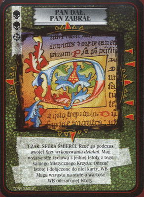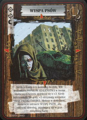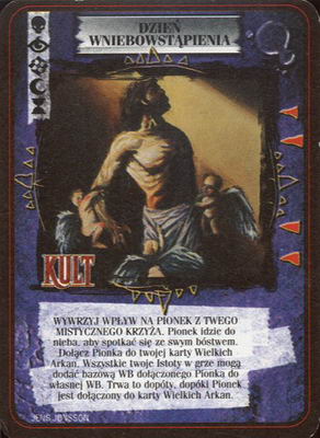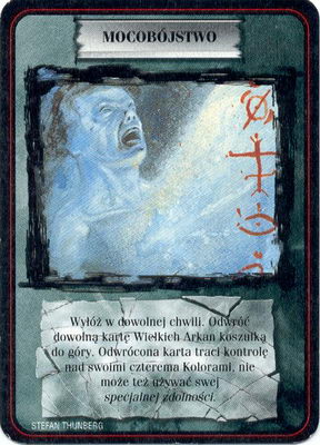 - Dokładanie dodatkowych kosztów za pomocą DZIWNYCH EONÓW i POWIESZENIA to jest zawsze coś, z czego cieszy się przeciwnik. Te karty jednak tylko w teorii są dobre. Nie dość, że można dołączać je tylko do Wielkich Arkan o konkretnej przynależności, to jeszcze nakładają takie same restrykcje co do ich zagrywającego. Powoduje to, że będą działać wyłącznie w walce z Arkanami o przeciwnej przynależności niż nasza. Problem w tym, że Kult nie przewiduje koncepcji sideboardu i może się zdarzyć, że zostaniemy z 3 martwymi kartami w decku, jeśli nasz przeciwnik ma taką przynależność, jak my. Według mnie to kandydaci do erraty, gdzie wszelkie restrykcje przynależności należałoby zdjąć.