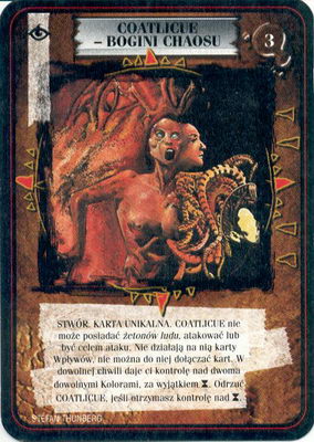 (choć ten komentarz odnosi się do wszelkich Czarów), trzebaby grać na Wielkim Arkanum kontrolującym już ten Kolor (a najlepiej dwa) oraz mieć sporo Magów w talii, aby te Czary rzucać. Problem polega na tym, że tych Magów w Kulcie wcale nie ma tak wiele i zmieszczenie ich w talii stanowi wyzwanie z uwagi na Kolory – trzeba pogodzić zarówno Kolory Czarów, Magów oraz Wielkich Arkan. Nie widziałem jeszcze grywalnej kombinacji powyższych. Jedyna opcja, to granie