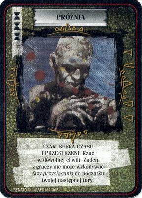PRÓŻNIA – najmocniejszy z Czarów, blokujący wszystkim przeciwnikom fazę przyciągania. Można mieć 3 w talii, nie spada z gry po użyciu. Do tego można rzucić w dowolnej chwili. Jak w Media Markt – powinni tego zabronić.